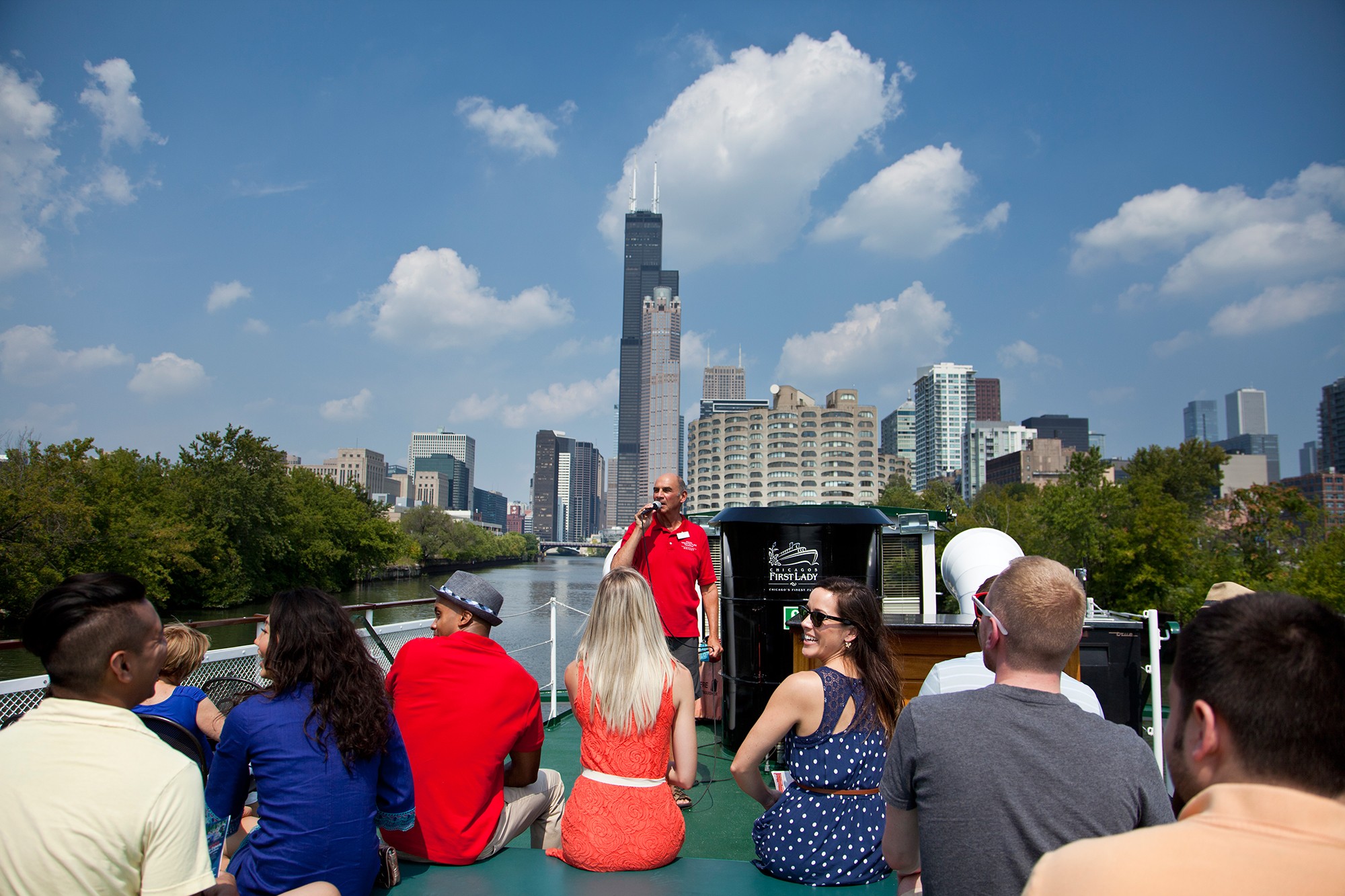 About our Boat PartnerWe’re proud to partner with Chicago’s First Lady Cruises, operator of Chicago’s finest fleet of cruising vessels. Its boats hold up to 250 passengers and feature open-air upper decks, full-service bars, climate-controlled lower cabins and upscale marble and granite restrooms. Being onboard is sure to be an experience you’ll never forget.